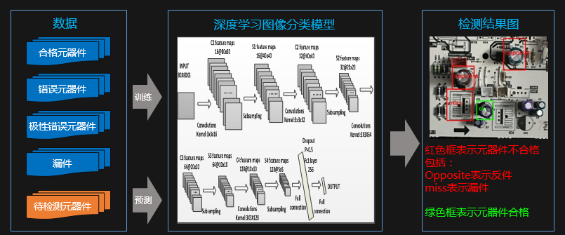 基于5G大帶寬技術(shù),生產(chǎn)線機(jī)器視覺檢測(cè)直接以無線的方式部署4K清晰度以上的超高清工業(yè)攝像頭,避免了布線成本以及對(duì)產(chǎn)線的影響。同時(shí)采集的產(chǎn)品高清圖像通過極低的時(shí)延傳輸至AI平臺(tái),通過人工智能技術(shù)的深度學(xué)習(xí)圖像分類模型進(jìn)行計(jì)算,對(duì)產(chǎn)線上的元器件進(jìn)行實(shí)時(shí)自動(dòng)分析,實(shí)現(xiàn)產(chǎn)品的智能實(shí)時(shí)檢測(cè)。系統(tǒng)實(shí)現(xiàn)自動(dòng)判斷標(biāo)注,杜絕人工檢測(cè)過程的漏檢錯(cuò)檢問題;同時(shí),所有單元無線組網(wǎng),可按需、快速、靈活組合。
