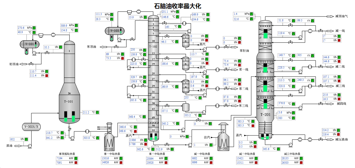 提供生產(chǎn)裝置優(yōu)化解決方案,對生產(chǎn)過程的操作方案、工藝技術(shù)參數(shù)、裝置潛力和瓶頸等進行經(jīng)常性的定量分析和診斷,優(yōu)化裝置生產(chǎn)操作。把原油調(diào)合成套裝備與原油近紅外快評工具、原油加工優(yōu)化軟件深度融合,實現(xiàn)了對近百余種原油配方優(yōu)化和組分的精確控制,原料組分穩(wěn)定可控,確保了常減壓裝置平穩(wěn)經(jīng)濟控制。同時,將大數(shù)據(jù)分析與機理分析相結(jié)合,對生產(chǎn)數(shù)據(jù)、石腦油原料進行分析建模,建立操作樣本庫,指導工藝參數(shù)優(yōu)化.通過機理模型驗證后,提高汽油收率和辛烷值,增效顯著。
