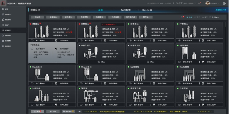 基于工業(yè)知識庫,實現(xiàn)調(diào)度指揮在線閉環(huán)。提升協(xié)同指揮效率,提高科學決策水平。支撐全廠調(diào)度指揮應用,實現(xiàn)基于管理知識的調(diào)度智能化。生產(chǎn)監(jiān)控為運行、進出廠、罐區(qū)、物料平衡等敏感環(huán)節(jié)提供高效監(jiān)控工具。預警告警為運行人員提供生產(chǎn)報警、生產(chǎn)預警、智能處理等信息。基于調(diào)度指令生成規(guī)則,對調(diào)度指令的編制、審核、發(fā)布、執(zhí)行與反饋過程實現(xiàn)在線閉環(huán)管理。