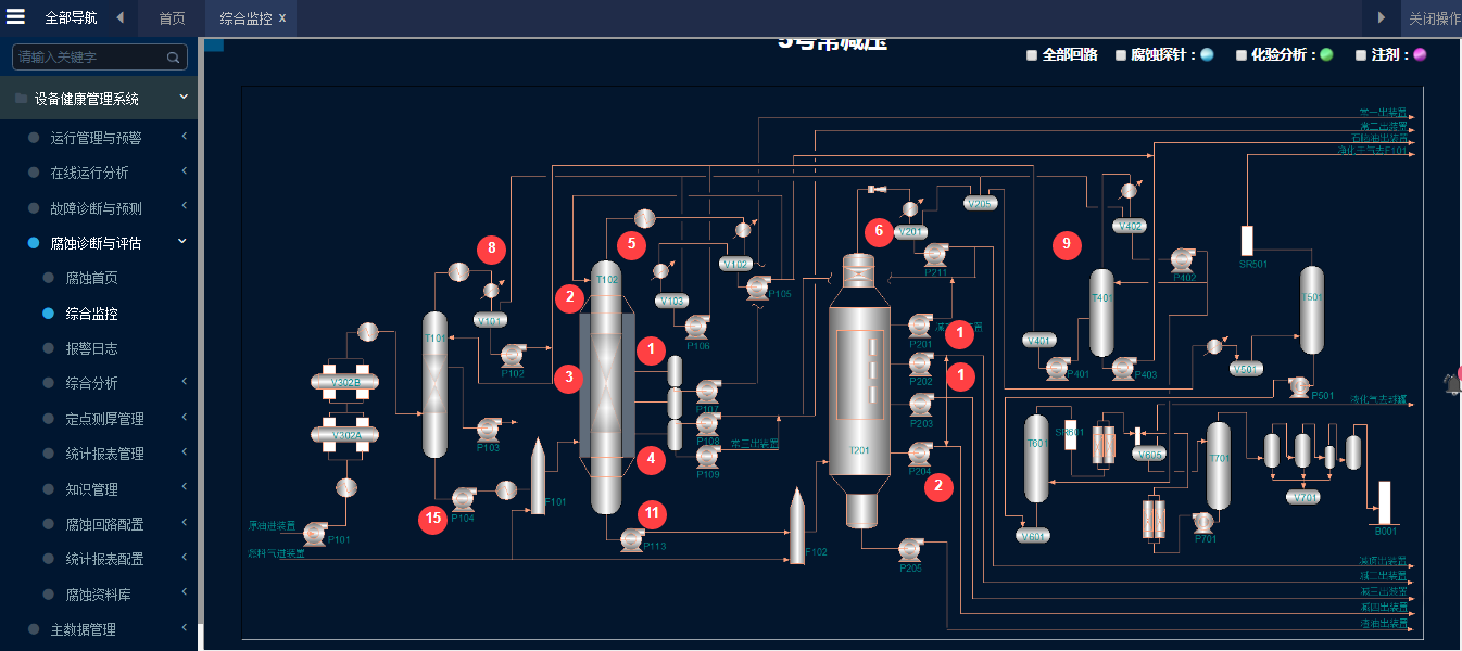 基于數(shù)字孿生工業(yè)大數(shù)據(jù)模型的大型工業(yè)設(shè)備健康管理,幫助企業(yè)實現(xiàn)動設(shè)備預防性維修,減少非計劃停工。包括:運行管理與預警、在線運行分析、故障診斷與預測和腐蝕評估與預測。