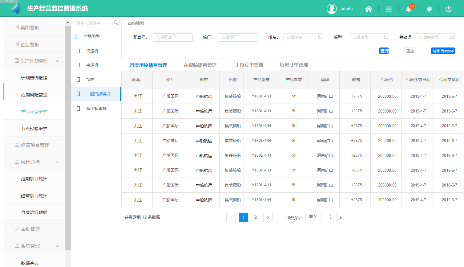 其中月度承接項(xiàng)目管理定義為月度新增的生產(chǎn)計(jì)劃;在跟蹤項(xiàng)目管理定義為尚未形成合同簽訂的項(xiàng)目;手持訂單管理定義為已簽訂合同尚未完成交付的項(xiàng)目;歷史訂單管理定義為已完成交付的項(xiàng)目。