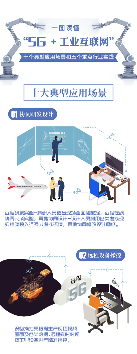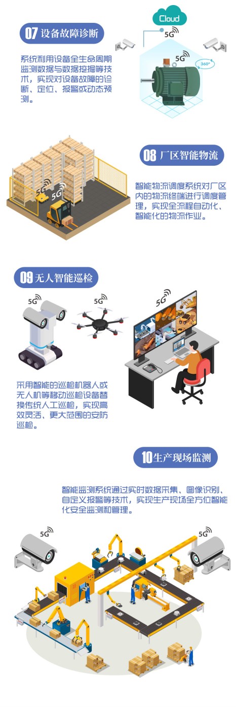 為系統總結發展成效,向更多行業和企業應用“5G+工業互聯網”提供具有借鑒意義的模式和經驗,工業和信息化部總結形成《“5G+工業互聯網”十個典型應用場景和五個重點行業實踐》,具體介紹10個典型場景及5個重點行業“5G+工業互聯網”的實際應用情況。