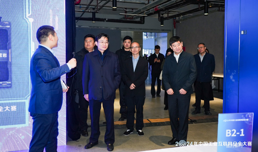 同時,閉幕式上還邀請中國信通院、北京網(wǎng)藤科技有限公司、北京國信網(wǎng)聯(lián)科技有限公司、北京衛(wèi)達(dá)信息技術(shù)有限公司、北京安天網(wǎng)絡(luò)安全技術(shù)有限公司專家分別就工業(yè)互聯(lián)網(wǎng)安全政策標(biāo)準(zhǔn)解讀、企業(yè)級網(wǎng)絡(luò)安全防護(hù)體系建設(shè)與運營、基于SaaS的工業(yè)企業(yè)一體化網(wǎng)絡(luò)安全實踐、基于動態(tài)防御技術(shù)體系的工業(yè)網(wǎng)絡(luò)安全實踐、工業(yè)網(wǎng)絡(luò)環(huán)境下的勒索病毒防治等方面發(fā)表了主題演講。大賽閉幕式暨頒獎儀式舉辦前,與會領(lǐng)導(dǎo)嘉賓共同巡視參觀了競賽場景。