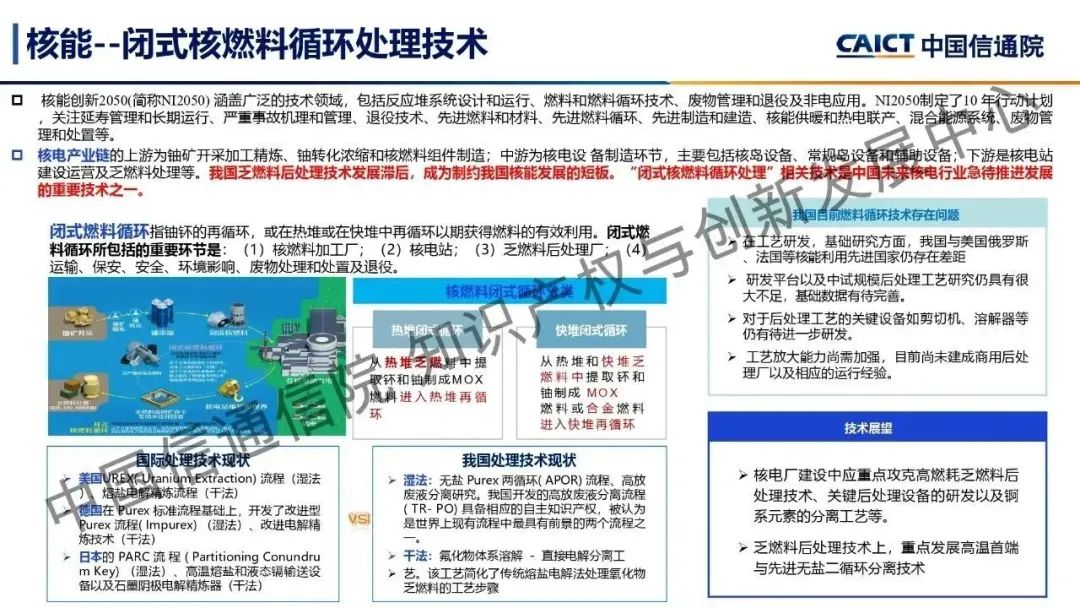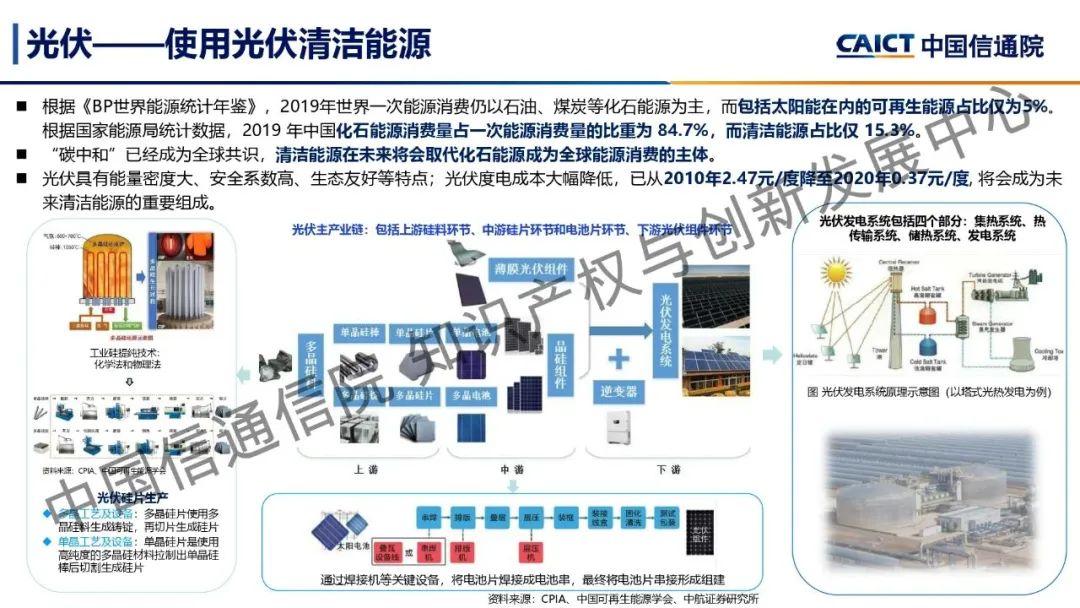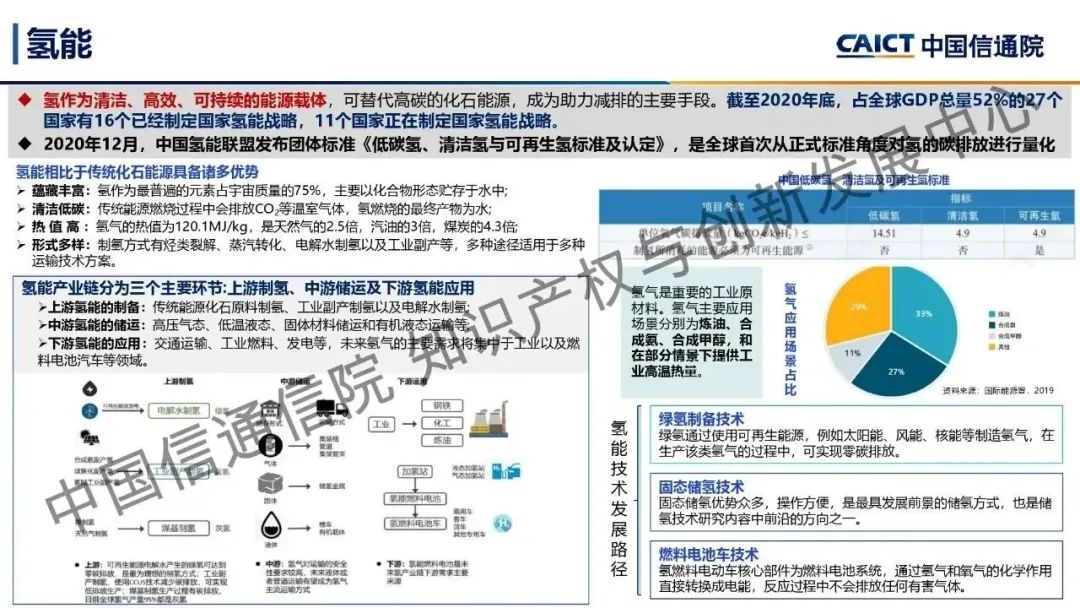 本期為您帶來由中國信通院知識產(chǎn)權(quán)與創(chuàng)新發(fā)展中心司法鑒定部副主任閆坤分享的《雙碳前沿科技創(chuàng)新——綠色技術(shù)》。能源領(lǐng)域是實(shí)現(xiàn)“雙碳”目標(biāo)的關(guān)鍵,通過對傳統(tǒng)煤炭能源領(lǐng)域和光伏、風(fēng)能、核能及氫能等綠色能源領(lǐng)域的前沿技術(shù)進(jìn)行研究及分析,了解了能源領(lǐng)域的前沿技術(shù)發(fā)展現(xiàn)狀及技術(shù)創(chuàng)新突破。煤炭領(lǐng)域的煤氣化技術(shù)、光伏領(lǐng)域的顆粒硅生產(chǎn)技術(shù)和光伏建筑一體化技術(shù)、風(fēng)能領(lǐng)域的海上漂浮式風(fēng)電技術(shù)、核能領(lǐng)域的閉式核燃料循環(huán)處理技術(shù)、氫能領(lǐng)域的氫制備和氫氣儲運(yùn)技術(shù)是未來能源領(lǐng)域的重要前沿技術(shù),通過對這些技術(shù)的創(chuàng)新與突破,能夠推動能源領(lǐng)域碳中和路徑健康高速發(fā)展。
