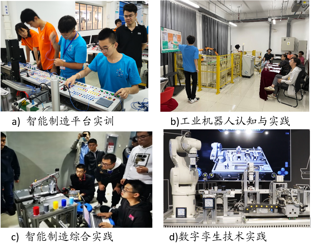 目前,實訓(xùn)基地主要特色與創(chuàng)新可概括為:面向系統(tǒng)性工程問題,以實操任務(wù)出發(fā),借助智能化、信息化、數(shù)字化環(huán)境條件,設(shè)置項目制、層次化的實踐任務(wù),為不同專業(yè)、不同年級的學(xué)生提供具有高階性、創(chuàng)新性、挑戰(zhàn)度(兩性一度)的實踐教學(xué)內(nèi)容。