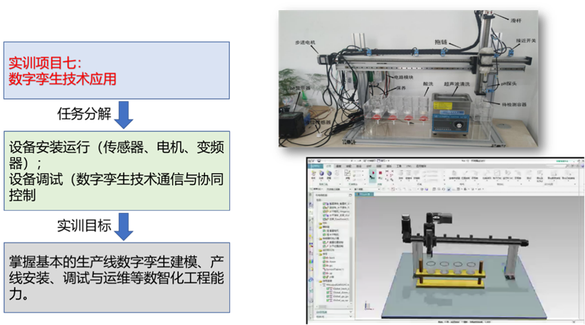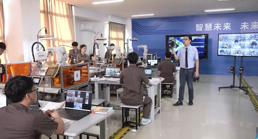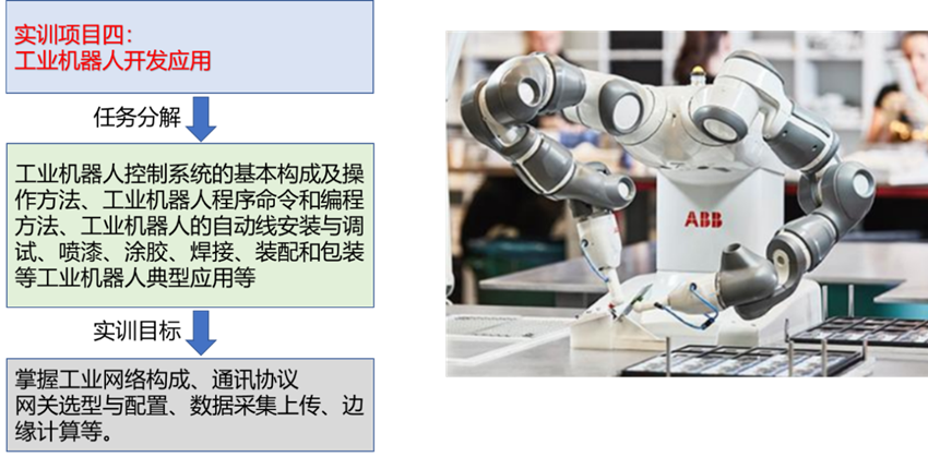 實(shí)訓(xùn)基地開展了眾多綜合實(shí)訓(xùn)項(xiàng)目:智能產(chǎn)線安裝、調(diào)試和運(yùn)維、工業(yè)互聯(lián)網(wǎng)平臺和工業(yè)軟件應(yīng)用、工業(yè)數(shù)據(jù)采集與可視化、工業(yè)機(jī)器人應(yīng)用、工業(yè)APP開發(fā)與應(yīng)用、視覺檢測系統(tǒng)應(yīng)用、智能產(chǎn)線數(shù)字孿生應(yīng)用等。