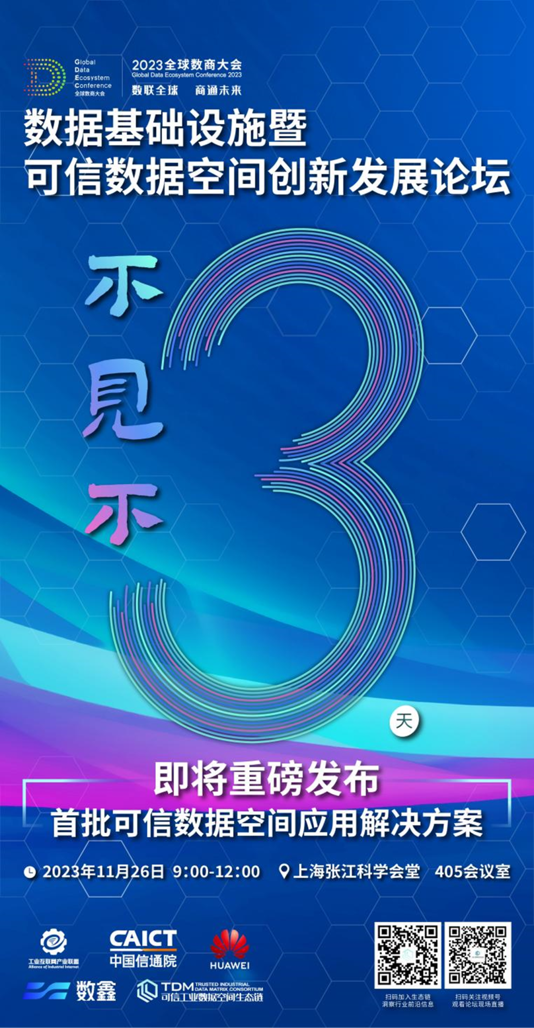11月26日,由工業互聯網產業聯盟、可信工業數據空間生態鏈、華為云、數鑫科技、上海市工業互聯網協會等單位共同舉辦的2023全球數商大會-數據基礎設施暨可信數據空間創新發展論壇即將召開,論壇期間將重磅發布首批15家可信數據空間應用解決方案供應商。敬請關注期待!