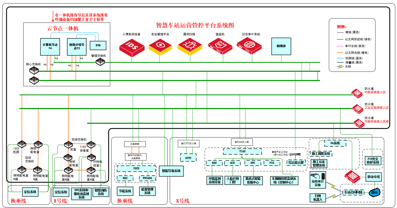 本期方案建設范圍僅覆蓋2個車站,通過本方案試點建設,后續(xù)將持續(xù)推廣,逐漸覆蓋該線路全部車站,建設線路級智慧車站運營管控平臺,并按照既有安全方案同步進行網(wǎng)絡安全建設。