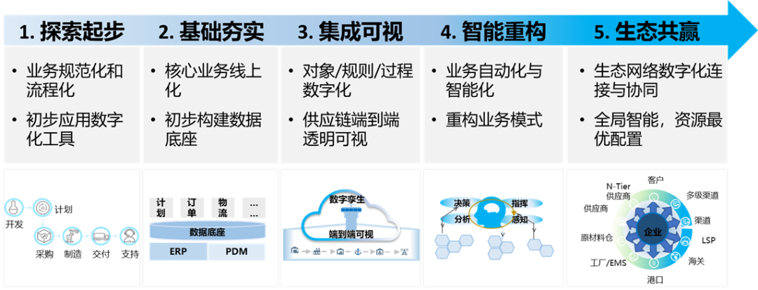 供應(yīng)鏈數(shù)字化轉(zhuǎn)型水平劃分為5個階段