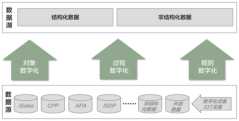數據是數字時代新的生產要素。只有獲取和掌握更多的數據資源,才能在新一輪的全球話語權競爭中占據主導地位。華為供應鏈充分認識到數據在生產過程中的重要價值,并從三個方面推動業務數字化,構建供應鏈的數據底座(如圖1)。