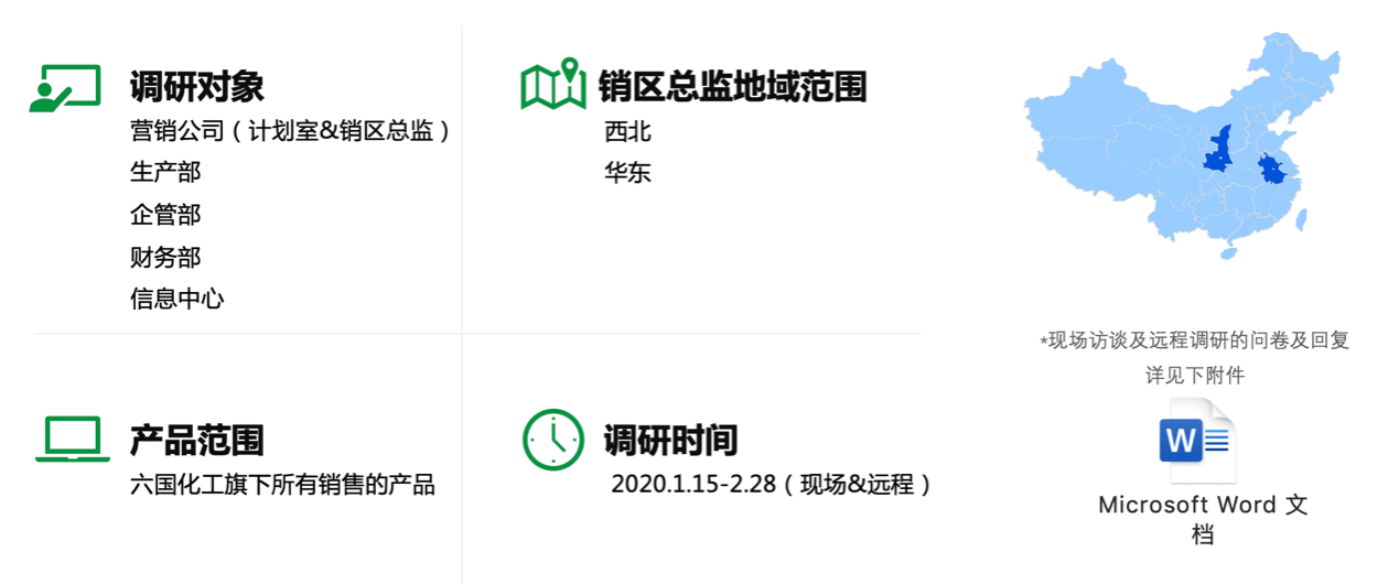 在此階段中,杉數與六國化工成立聯合項目組,對潛在的營銷公司,生產部,企管部等多個部門的用戶進行詳細調研,并對項目整體范圍進行確認。