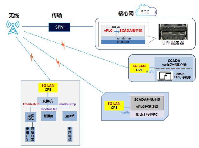 UPF服務(wù)器虛擬化PLC控制:5GUPF服務(wù)器滿足施耐德EAE虛擬化PLC的運(yùn)行要求,同時(shí)滿足與南向設(shè)備的通信需求。