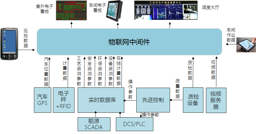 智能物聯(lián)的范圍包括:控制系統(tǒng)實時數(shù)據(jù)、質檢設備數(shù)據(jù)、電子秤計量數(shù)據(jù)、汽車GPS數(shù)據(jù)、巡檢數(shù)據(jù)、現(xiàn)場作業(yè)數(shù)據(jù)、調度指令及作業(yè)指令數(shù)據(jù)、視頻數(shù)據(jù)等。