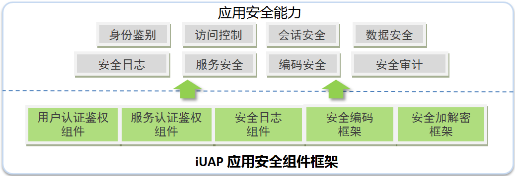 在這些組件及框架的基礎上,應用開發(fā)可以快速實現(xiàn)包括身份鑒別、訪問控制、會話安全、數(shù)據(jù)安全、安全日志、安全審計、服務安全、編碼安全等應用所需的基礎安全能力。