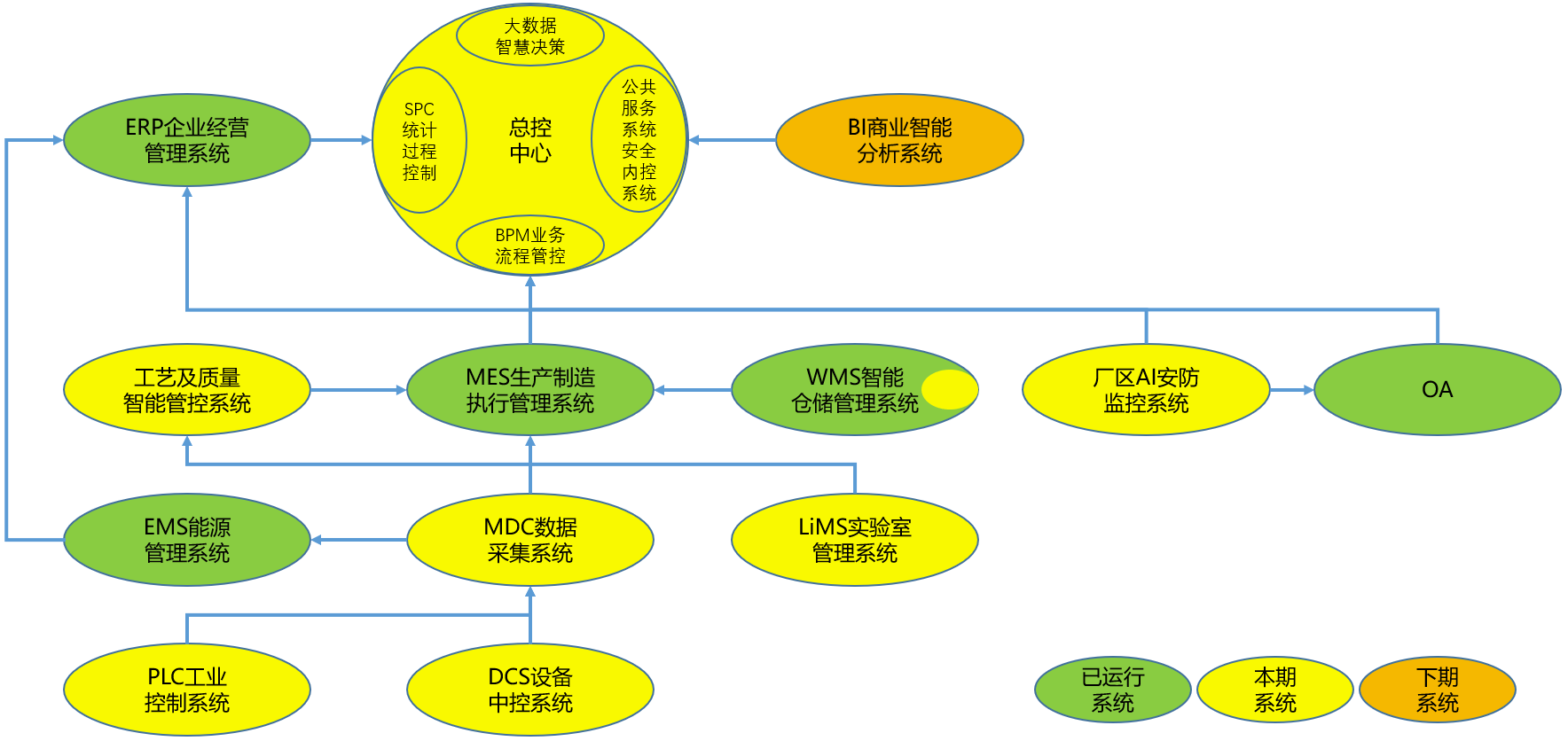 在現有ERP、MES、WMS、EMS、OA等信息系統的基礎之上,本項目實現了MDC數據采集系統、LiMS實驗室管理系統、廠區AI安防監控系統、工藝及質量智能管控系統、AGV調度系統等。后期規劃有BI商業智能分析系統。