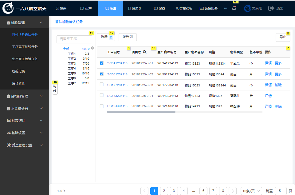6.生產過程數字化:實現質量檢驗、生產報工、產品工序轉移、在制品管理、不合格管理。