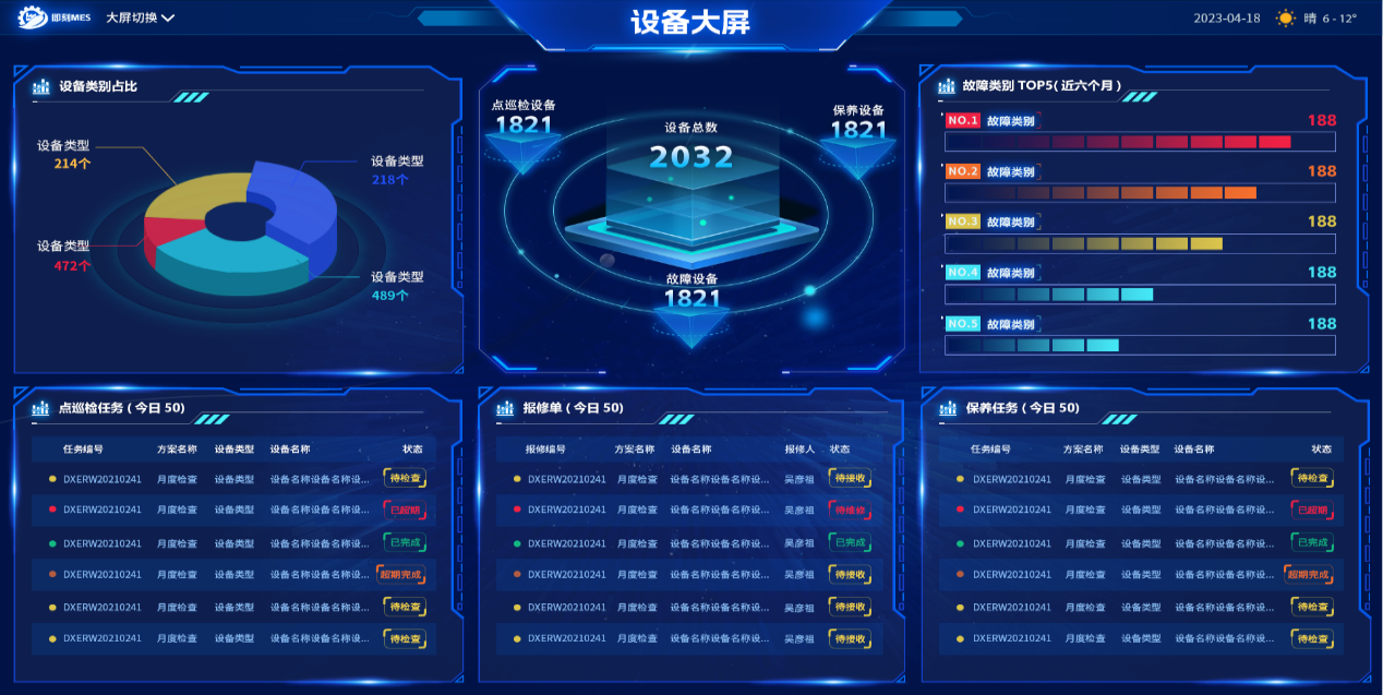 設備資產是企業重要的資產,良好的設備管理可以幫助企業精準、實時的掌握重要資產情況,同時有助于延長設備的生命周期。六安一六八基于5G互利網技術,建設設備管理系統,包括設備臺賬、設備維修、設備點巡檢、設備保養、設備IOT,實現推設備的在線管理。及時精準掌握設備的運行情況、維修情況、告警情況等各種企業關注的要素,間接幫助企業實現生產成本的降低效果。
