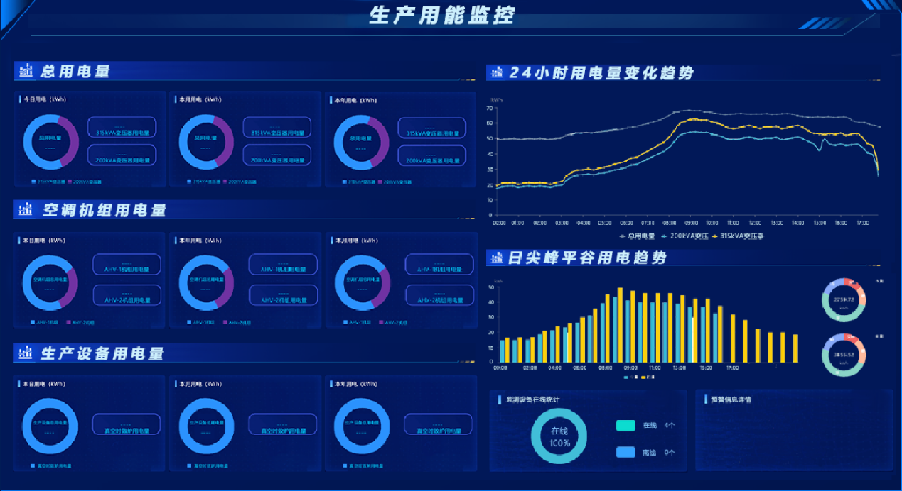 實施成效:從用電全生命周期出發,建立標準的、有效的管理體系,通過節能監測、能源統計、能效分析等功能,優化設備運行、峰谷用電、報裝方式、用能類別配比,制定并貫徹落實能源節約方案;打通管理系統脈絡,制定適合適事適時的管理執行方案,幫助實現節能減排、雙控雙碳的目標。