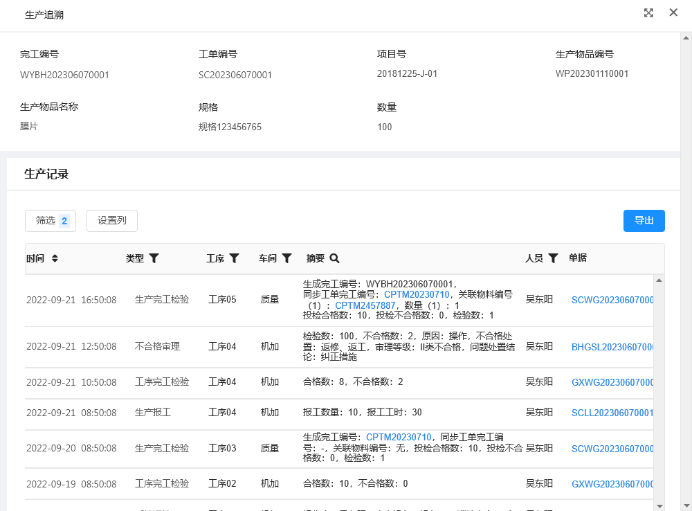 實施效果:通過追溯到生產過程中的人、機、料、法、環等相關信息,極大地提高了生產異常等情況的追溯效率及追溯準確性。提高的生產及相關問題處理效率,更清晰的知曉問題關鍵節點,提升了生產效率,降低了物料損耗、運營成本及不合格率。