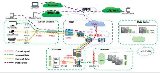 基于中國電信全國一張網(wǎng)的5G SA獨(dú)立組網(wǎng),為園區(qū)打造基于SA 的網(wǎng)絡(luò)切片,通過在無線接入層、承載層、核心網(wǎng)層的網(wǎng)絡(luò)切片,為日星公司打造云網(wǎng)融合的專網(wǎng)通道,形成云網(wǎng)一體的數(shù)據(jù)安全隔離,實(shí)現(xiàn)云邊協(xié)同的超低時延保障。