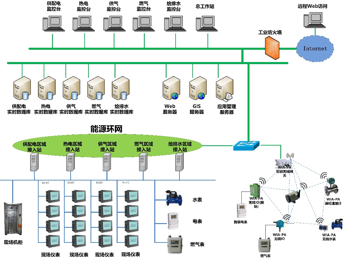 ? 工廠部署WIA-PA網(wǎng)絡(luò),實(shí)現(xiàn)廠內(nèi)標(biāo)準(zhǔn)化工業(yè)物聯(lián)網(wǎng)全覆蓋,用于現(xiàn)場(chǎng)能源儀表數(shù)據(jù)的全面采集。