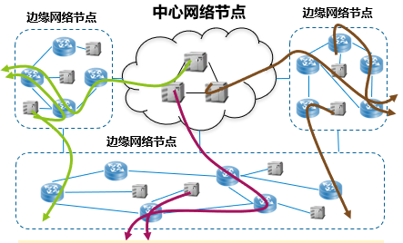 集中式DC部署呈現匯聚式流量模型,以主機為請求對象效率最高,流量的疏導和優化在匯聚式流量模型中呈現一定規律性,較為容易疏導。