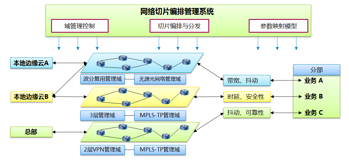 異構性:網絡切片可以兼容承載網各管理域,形成全網絡資源視圖,實現端到端編排。