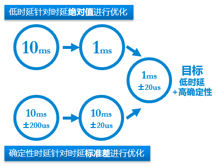 傳統業務聚焦帶寬保證,現階段承載網通過建設專網、流量優化調度和及時擴容的手段,滿足業務對帶寬的需求。在較高的帶寬需求之外,新型業務為給用戶提供極致的業務體驗,對網絡端到端的時延也提出了新的需求,包括了極低時延和確定性時延兩方面。