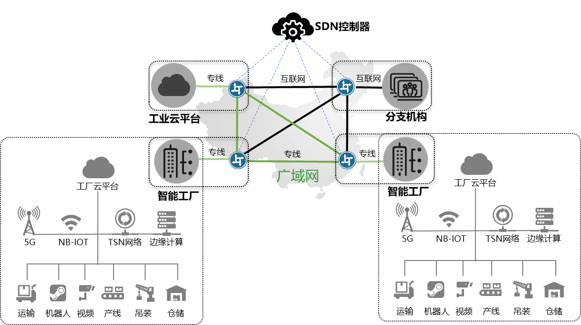 1)基于SDN、5G、NB-IOT等技術(shù)完成奇瑞集團(tuán)工廠外網(wǎng)互聯(lián)互通系統(tǒng),完成奇瑞集團(tuán)一二三四五廠、汽研院、實(shí)驗(yàn)中心等七大核心廠區(qū)(蕪湖),省外工廠(大連、鄂爾多斯),以及捷豹路虎(常州)、觀致(常州)、凱翼(宜賓)、新能源(蕪湖城南)四個獨(dú)立品牌工廠之間的網(wǎng)絡(luò)互聯(lián)互通改造;支持專線、互聯(lián)網(wǎng)、5G等多種類型的互聯(lián)互通方式,支持基于SDN的網(wǎng)絡(luò)調(diào)度管理。基于NB-IOT等技術(shù)實(shí)現(xiàn)遠(yuǎn)程管理維護(hù)監(jiān)測。基于SDN、5G等技術(shù)完成基于帶寬網(wǎng)絡(luò)技術(shù)的業(yè)務(wù)協(xié)同應(yīng)用。