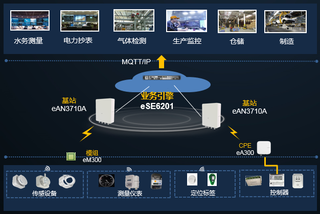 業(yè)務引擎Service Engine(eSE6201)包括三大功能,即接入認證管理、操作維護管理和應用接口管理三大功能。其中接入認證管理功能模塊主要用于基站的接入控制、認證和鑒權,信令和數(shù)據(jù)處理,操作維護等功能。應用接口管理主要負責提供與上層物聯(lián)網平臺或者行業(yè)應用之間的接口。Service Engine對外可提供基于標準的IoT接口(MQTT/IP轉發(fā))對接上層物聯(lián)網平臺,起到數(shù)據(jù)轉發(fā)、IP代理的功能。操作維護管理指的是對于下轄的AirNode、CPE進行管理的能力。