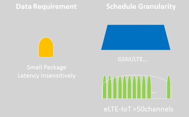 eLTE-IoT提供更小的資源分配粒度,定義了窄帶信道,這樣單位帶寬內可以有更多的上行信道,支持并發(fā),而且為了提供海量鏈接,允許多個用戶復用一個信道;