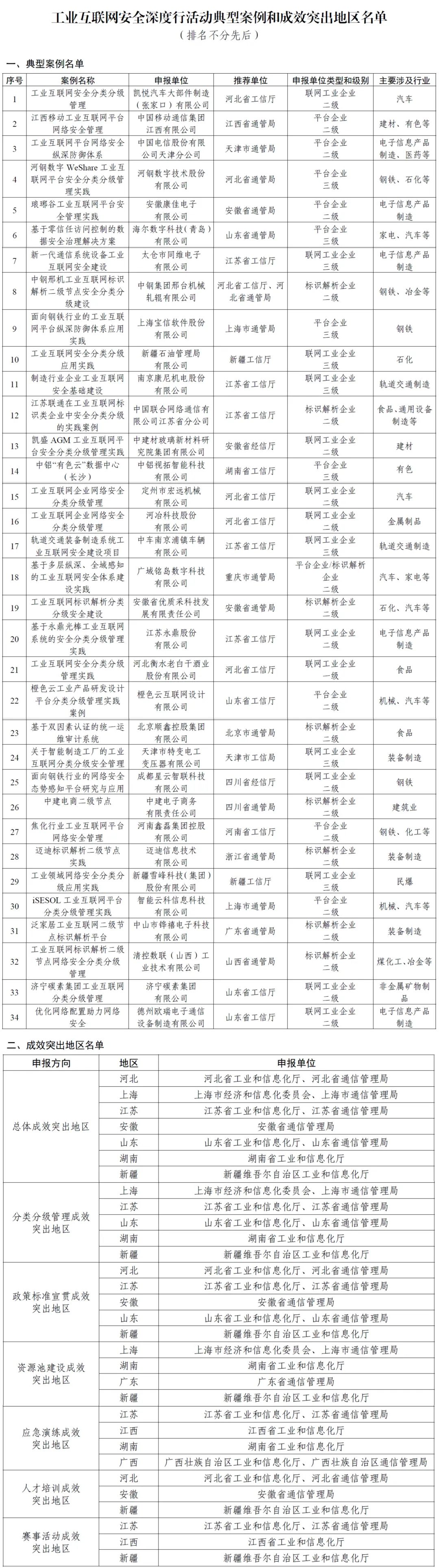 關(guān)于公布工業(yè)互聯(lián)網(wǎng)安全深度行活動典型案例和成效突出地區(qū)名單的通知