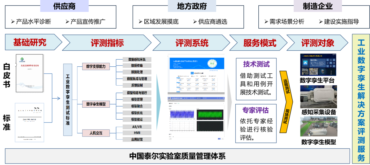 為支持企業開展工業數字孿生技術創新與解決方案研發推廣,本著以測促建、以測促用的宗旨,工業互聯網產業聯盟(以下簡稱“聯盟/AII”)理事長單位中國信息通信研究院依托技術研究積累,聯合行業各方力量聯合研究編制了《工業數字孿生測試驗證標準》,開發建設了“信通院工業數字孿生測試驗證系統”,并在聯盟第二十次工作組會上推出“工業數字孿生解決方案綜合評測服務”,重點面向平臺企業、行業解決方案企業、制造企業等。