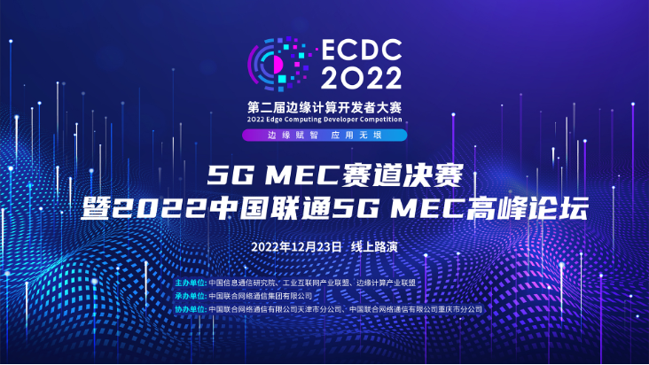 2022年12月23日,第二屆邊緣計(jì)算開發(fā)者大賽(ECDC 2022)“5G MEC”賽道決賽暨2022中國(guó)聯(lián)通5G MEC高峰論壇以線上形式成功舉辦。本次活動(dòng)由中國(guó)信息通信研究院、工業(yè)互聯(lián)網(wǎng)產(chǎn)業(yè)聯(lián)盟、邊緣計(jì)算產(chǎn)業(yè)聯(lián)盟共同主辦,中國(guó)聯(lián)合網(wǎng)絡(luò)通信集團(tuán)有限公司承辦,中國(guó)聯(lián)合網(wǎng)絡(luò)通信有限公司天津市分公司、中國(guó)聯(lián)合網(wǎng)絡(luò)通信有限公司重慶市分公司協(xié)辦。來自中國(guó)信通院、中國(guó)聯(lián)通、重慶朗維機(jī)電有限公司、網(wǎng)絡(luò)通信與安全紫金山實(shí)驗(yàn)室等單位的領(lǐng)導(dǎo)、行業(yè)專家、參賽成員等共同參與了本次活動(dòng)。
