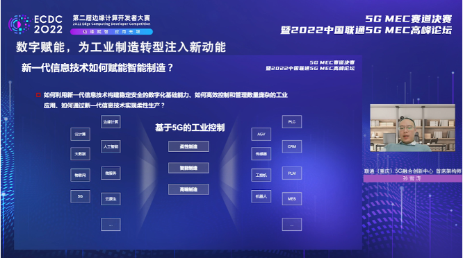 聯(lián)通(天津)產(chǎn)業(yè)互聯(lián)網(wǎng)研究院副院長(zhǎng)艾艷可、聯(lián)通(重慶)5G融合創(chuàng)新中心首席架構(gòu)師孫雪濤分別作了題為“5G MEC助力產(chǎn)業(yè)數(shù)字化轉(zhuǎn)型發(fā)展”“數(shù)字賦能,為工業(yè)制造轉(zhuǎn)型注入新動(dòng)能”的主題演講。