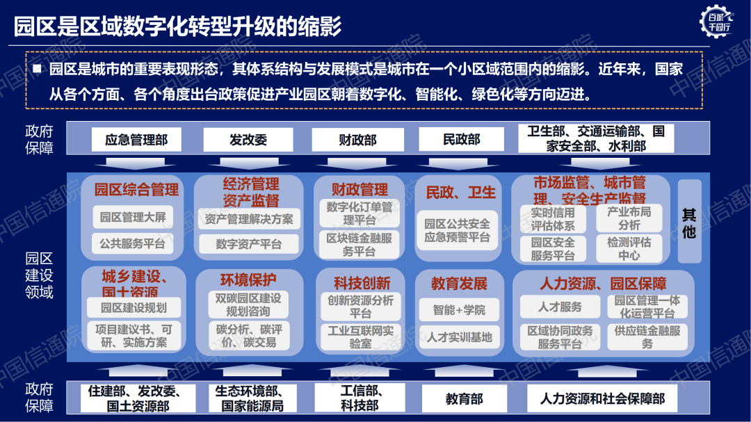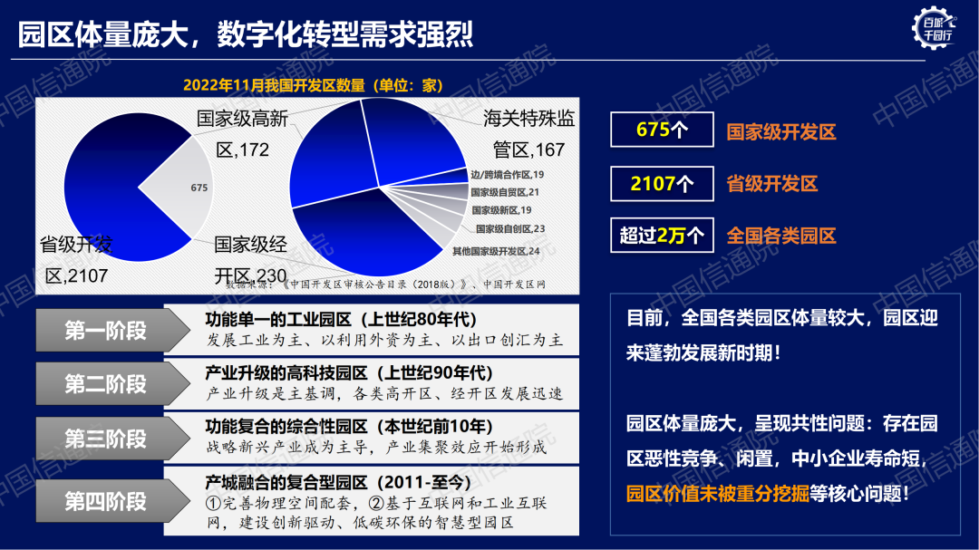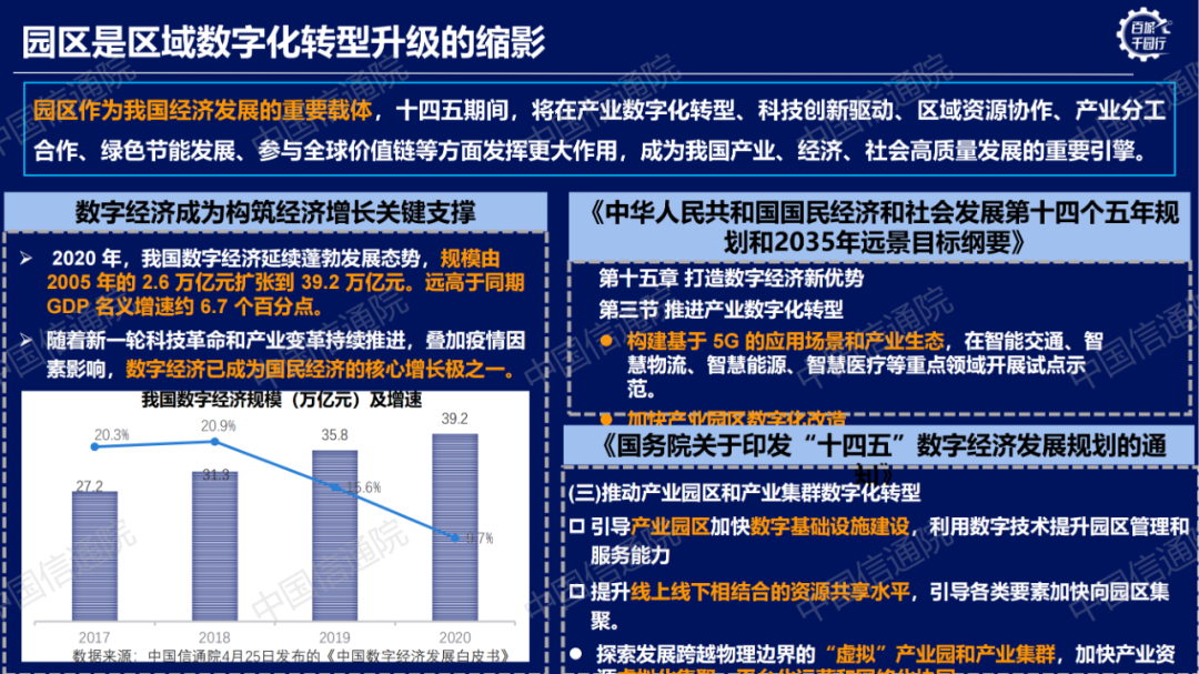 “園區(qū)經(jīng)濟”是改革開放以來中國經(jīng)濟發(fā)展的重要經(jīng)驗,不僅成為了中國經(jīng)濟的載體和平臺,也成為區(qū)域經(jīng)濟增長的快速增長極。2022年2月,國務院印發(fā)《“十四五”數(shù)字經(jīng)濟發(fā)展規(guī)劃》,提出要推動園區(qū)數(shù)字化轉型,引導產(chǎn)業(yè)園區(qū)加快數(shù)字基礎設施建設,探索發(fā)展跨越物理邊界的“虛擬”產(chǎn)業(yè)園和產(chǎn)業(yè)集群。隨著工業(yè)互聯(lián)網(wǎng)的快速發(fā)展和深化應用,工業(yè)互聯(lián)網(wǎng)園區(qū)正在加速崛起,工業(yè)園區(qū)、高新技術產(chǎn)業(yè)開發(fā)區(qū)、工業(yè)化產(chǎn)業(yè)示范基地及各種產(chǎn)業(yè)集聚區(qū)正在加速引入工業(yè)互聯(lián)網(wǎng)技術和理念進行建設、改造或升級。