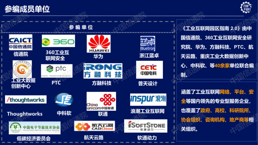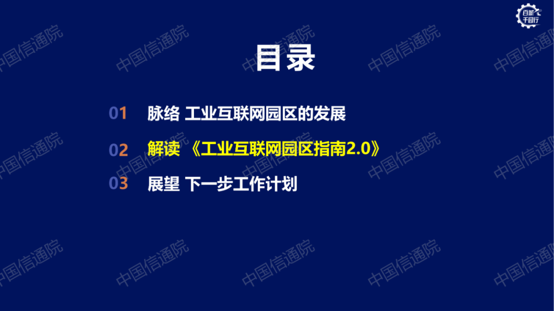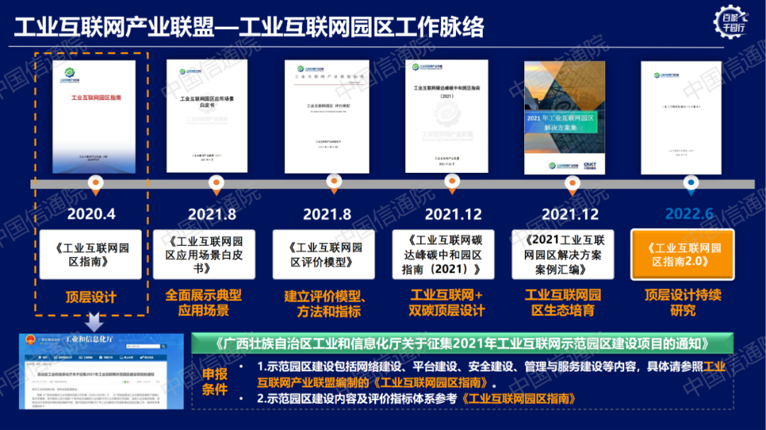 2023年1月9日,《工業(yè)互聯(lián)網(wǎng)園區(qū)指南(2.0版本)》在2023 ICT+深度觀察報告會—工業(yè)互聯(lián)網(wǎng)“百城千園行”分論壇上正式發(fā)布。發(fā)布會現(xiàn)場,中國信息通信研究院(以下簡稱“中國信通院”)院長、工業(yè)互聯(lián)網(wǎng)產(chǎn)業(yè)聯(lián)盟理事長余曉暉為指南發(fā)布進行致辭。余曉暉表示希望指南2.0的更新發(fā)布可以為工業(yè)互聯(lián)網(wǎng)園區(qū)的建設和發(fā)展提供更加科學、清晰和可操作的指導,為園區(qū)轉型和數(shù)字經(jīng)濟發(fā)展注入新的活力。
