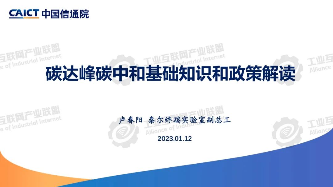 本期為您介紹由中國信息通信研究院泰爾終端實驗室副總工盧春陽分享的《碳達峰碳中和基礎(chǔ)知識和政策解讀》。盧春陽講解了碳達峰碳中和的科學內(nèi)涵、經(jīng)濟內(nèi)涵和重要意義,分析了國內(nèi)外能源消費結(jié)構(gòu)和我國碳排放的現(xiàn)狀,以及碳達峰碳中和面臨的挑戰(zhàn),解讀了我國碳達峰碳中和“1+N”政策體系,重點講解了《2030年前碳達峰行動方案》具體重點行動以及工業(yè)、建材和有色行業(yè)碳達峰實施方案的主要內(nèi)容。