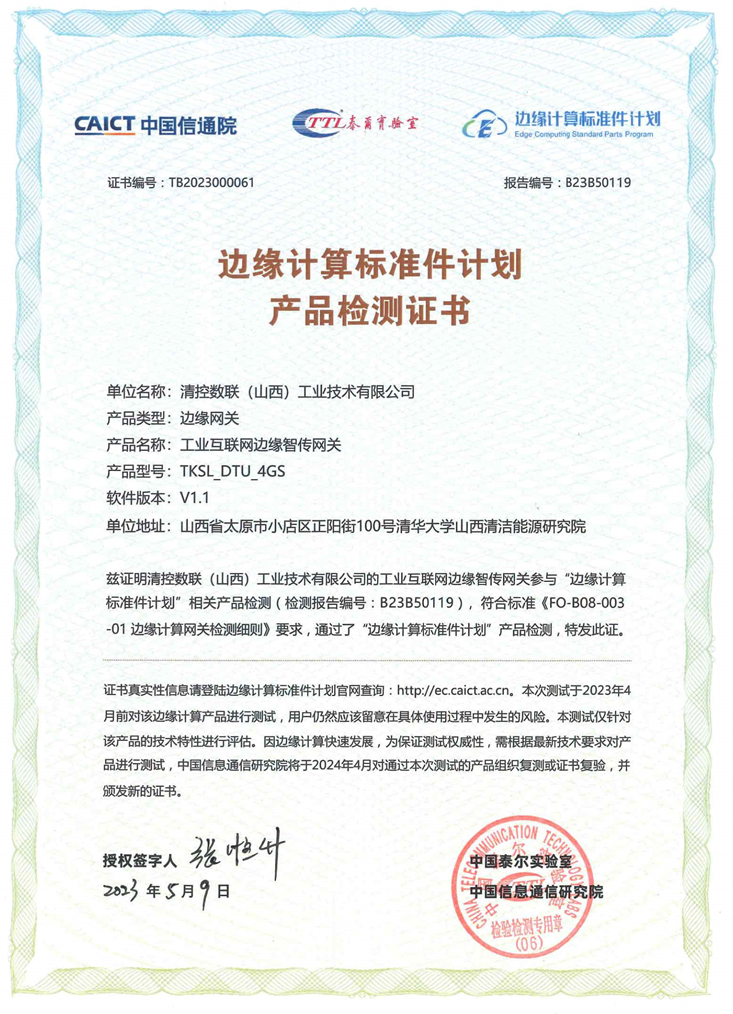 經(jīng)過中國信息通信研究院集中測試,清控數(shù)聯(lián)(山西)工業(yè)技術(shù)有限公司自主研發(fā)的工業(yè)互聯(lián)網(wǎng)邊緣智傳網(wǎng)關(guān)順利通過“邊緣計算標(biāo)準(zhǔn)件計劃”產(chǎn)品測試,并且在工廠能源、數(shù)字農(nóng)業(yè)等領(lǐng)域?qū)嶋H應(yīng)用部署和持續(xù)穩(wěn)定運行,助力各行業(yè)企業(yè)應(yīng)用升級,推動數(shù)字化建設(shè)落地。