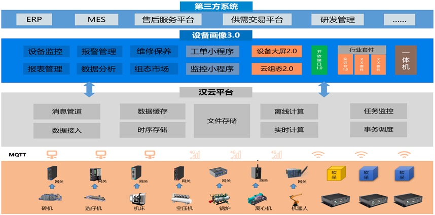 實訓基地由工裝檢測工作站、激光切割工作站、工業過程控制工作站、邊緣計算網關、漢云工業互聯網平臺、設備畫像、MES等構成。覆蓋工業互聯網平臺研發、工業應用研發、數據采集與分析、實施與運維、PLC編程應用等工業互聯網實訓內容。