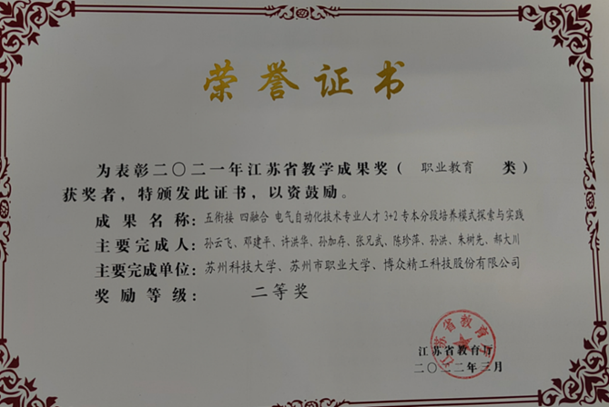 (1)開設(shè)工業(yè)互聯(lián)網(wǎng)技術(shù)專業(yè),進(jìn)行專業(yè)人才培養(yǎng)。基地責(zé)任單位蘇州市職業(yè)大學(xué)從2019年開始招生工業(yè)互聯(lián)網(wǎng)技術(shù)專業(yè)的學(xué)生,目前已經(jīng)連續(xù)招生4屆學(xué)生,畢業(yè)生供不應(yīng)求。與蘇州科技大學(xué)聯(lián)合進(jìn)行專本3+2人才培養(yǎng),雙方以工業(yè)互聯(lián)網(wǎng)方向?yàn)榕囵B(yǎng)目標(biāo),聯(lián)合工業(yè)互聯(lián)網(wǎng)企業(yè)簽訂三方合作協(xié)議,進(jìn)行師資互聘、實(shí)踐基地共享,共同構(gòu)建“五銜接 四融合”電氣自動(dòng)化技術(shù)專業(yè)人才3+2專本分段培養(yǎng)模式,相關(guān)教學(xué)成果獲江蘇省教學(xué)成果2等獎(jiǎng),共同建立的實(shí)踐基地獲省產(chǎn)教融合實(shí)訓(xùn)平臺(tái)。