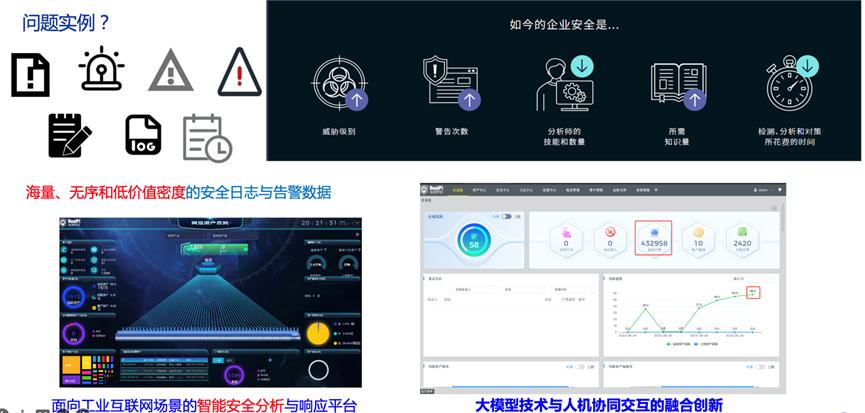 安全組提出構建一個面向工業(yè)互聯(lián)網(wǎng)場景的智能安全分析與響應平臺,通過工業(yè)大模型技術與人機協(xié)同的創(chuàng)新應用,研制成套的自主可控基于工業(yè)大模型的工業(yè)安全運營中心系統(tǒng),開發(fā)針對工業(yè)互聯(lián)網(wǎng)領域及安全運營需求定制化的模型和系統(tǒng),通過模型的語義解析和關聯(lián)計算,快速從復雜數(shù)據(jù)中提取高價值信息,生成清晰的網(wǎng)絡安全態(tài)勢視圖,使安全運營團隊能夠快速判斷事件的嚴重程度并做出響應。