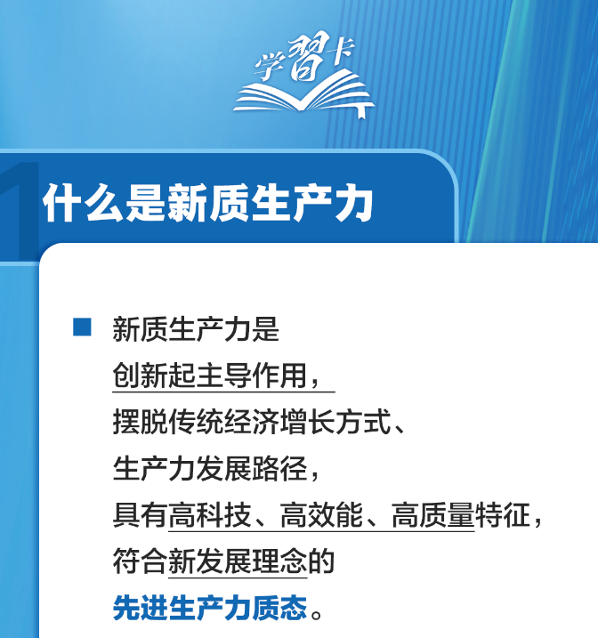2023年9月,習(xí)近平總書(shū)記在黑龍江考察調(diào)研期間首次提到“新質(zhì)生產(chǎn)力”。2024年1月31日,習(xí)近平在中共中央政治局第十一次集體學(xué)習(xí)時(shí)強(qiáng)調(diào),加快發(fā)展新質(zhì)生產(chǎn)力,扎實(shí)推進(jìn)高質(zhì)量發(fā)展。習(xí)近平總書(shū)記指出,高質(zhì)量發(fā)展需要新的生產(chǎn)力理論來(lái)指導(dǎo),而新質(zhì)生產(chǎn)力已經(jīng)在實(shí)踐中形成并展示出對(duì)高質(zhì)量發(fā)展的強(qiáng)勁推動(dòng)力、支撐力,需要我們從理論上進(jìn)行總結(jié)、概括,用以指導(dǎo)新的發(fā)展實(shí)踐。什么是新質(zhì)生產(chǎn)力,如何指導(dǎo)新的發(fā)展實(shí)踐,習(xí)近平總書(shū)記作了詳細(xì)闡釋?zhuān)黄饘W(xué)習(xí)!