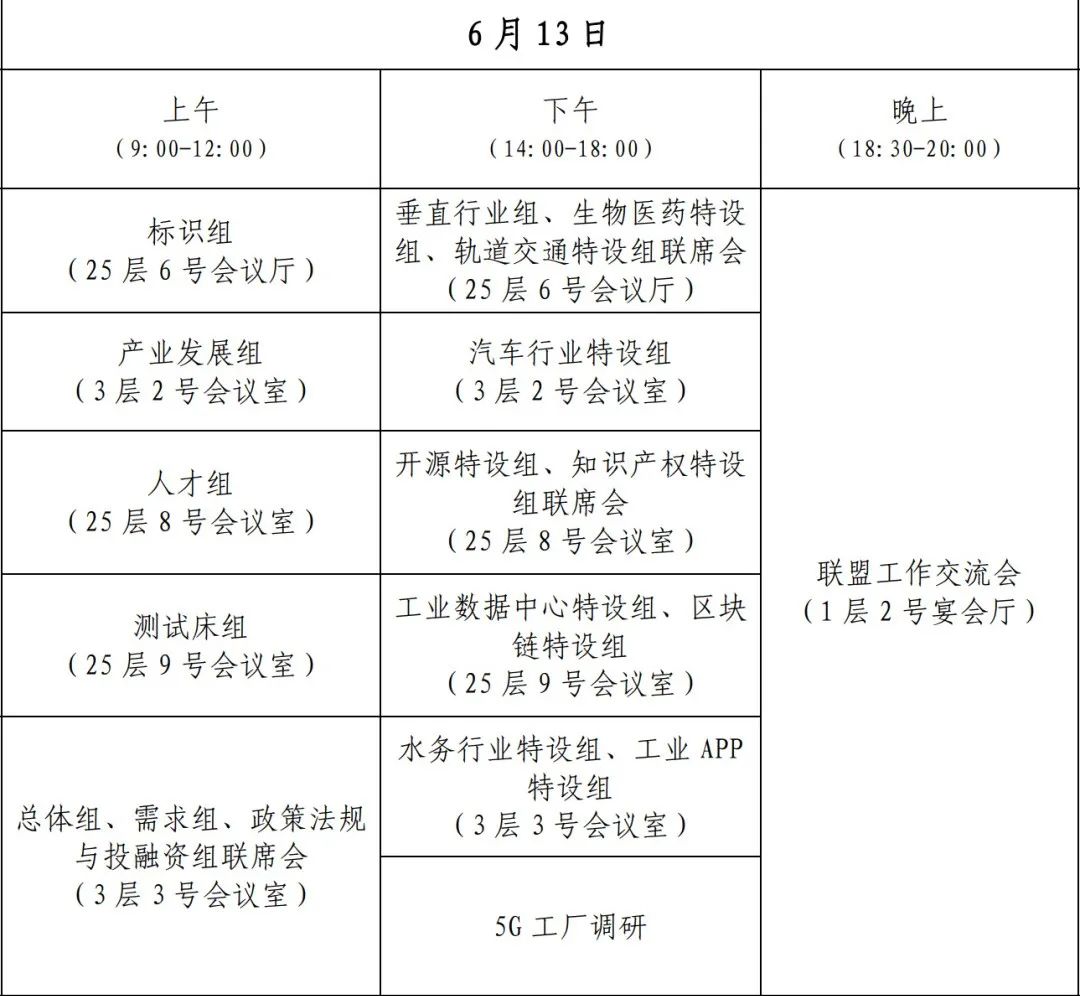 秘書處將通過聯盟公眾號(工業互聯網產業聯盟)和聯盟官網(http://m.ht-hotel.cn)實時更新會議議程,請密切關注。各工作組會議仍然以并行方式召開,為避免出現參會沖突,請各單位提前做好參會計劃。