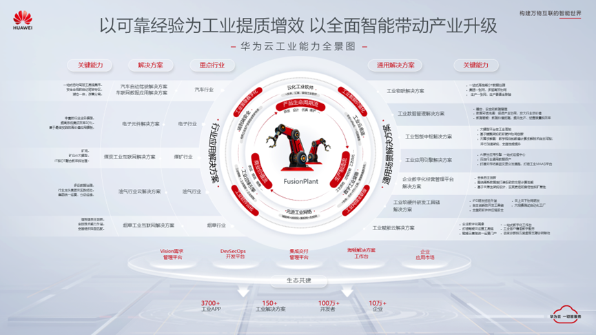華為利用“雙實(shí)企業(yè)”優(yōu)勢(shì),將經(jīng)驗(yàn)沉淀到FusionPlant工業(yè)互聯(lián)網(wǎng)平臺(tái),助力工業(yè)高質(zhì)量發(fā)展。以30年產(chǎn)品制造經(jīng)驗(yàn),設(shè)計(jì)與制造一體化,構(gòu)建世界級(jí)電子工業(yè)標(biāo)桿和企業(yè)數(shù)字化轉(zhuǎn)型標(biāo)桿;同時(shí),基于華為從底層“根技術(shù)”到上層應(yīng)用的全棧數(shù)字技術(shù)產(chǎn)業(yè)生態(tài),打造了國(guó)家級(jí)跨行業(yè)跨領(lǐng)域工業(yè)互聯(lián)網(wǎng)平臺(tái),通過(guò)一切皆服務(wù)的理念,構(gòu)建從數(shù)字化診斷、評(píng)估、解決方案提供、實(shí)施等全流程工業(yè)數(shù)字化轉(zhuǎn)型服務(wù)體系,實(shí)現(xiàn)華為工業(yè)能力和經(jīng)驗(yàn)外溢。
