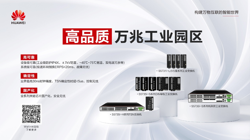 華為高品質(zhì)萬(wàn)兆工業(yè)園區(qū)網(wǎng)絡(luò)解決方案,面向“工業(yè)4.0”產(chǎn)業(yè)趨勢(shì),以體驗(yàn)為中心,以高可靠、確定性網(wǎng)絡(luò)為技術(shù)基礎(chǔ),從傳統(tǒng)OT現(xiàn)場(chǎng)生產(chǎn)網(wǎng),擴(kuò)展到生產(chǎn)IT&OT融合一張網(wǎng),疊加“極致高可靠”、“工業(yè)靈活接入”、“生產(chǎn)智能運(yùn)維”3大技術(shù)體系,打造自主可控“TSN+”高品質(zhì)萬(wàn)兆工業(yè)園區(qū)網(wǎng)絡(luò),助力工業(yè)數(shù)字化、智能化高質(zhì)量發(fā)展。例如:CloudEngine S5735I-S-V2系列工業(yè)交換機(jī)無(wú)風(fēng)扇散熱,IP4X防護(hù)等級(jí),防止粉塵侵?jǐn)_,滿足光伏拉晶車間對(duì)灰塵的嚴(yán)格控制要求;CloudEngine S5735I-H-V2系列TSN交換機(jī)支持us級(jí)確定性時(shí)延、網(wǎng)絡(luò)自編排,滿足產(chǎn)線PLC遠(yuǎn)程集中部署,實(shí)現(xiàn)高效運(yùn)維、安全調(diào)試;CloudEngine S1710I-S系列工業(yè)數(shù)采網(wǎng)關(guān)支持多種工業(yè)協(xié)議數(shù)據(jù)的采集(485、232、DI/DO、AI等),支持LTE/以太/Wi-Fi等按需的數(shù)據(jù)回傳。疊加NCE統(tǒng)一管理運(yùn)維,滿足工業(yè)設(shè)備可視化管理需求,提升設(shè)備網(wǎng)聯(lián)率,讓設(shè)備“開(kāi)口說(shuō)話”,加速數(shù)據(jù)變現(xiàn),助力企業(yè)生產(chǎn)效率提升。
