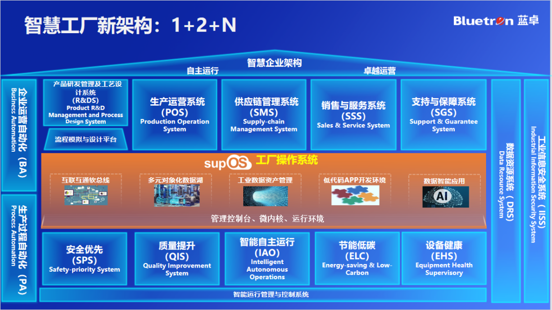 藍(lán)卓持續(xù)探索一條適合大規(guī)模、低成本推進(jìn)智能制造的路徑。2023年,藍(lán)卓創(chuàng)新打造“1+2+N”的智慧工廠新架構(gòu)。即1個(gè)工廠操作系統(tǒng)supOS;2個(gè)自動(dòng)化,一個(gè)是生產(chǎn)過程自動(dòng)化,一個(gè)是企業(yè)經(jīng)營(yíng)管理自動(dòng)化;以及N個(gè)工業(yè)軟件?;趕upOS平臺(tái),對(duì)企業(yè)各類數(shù)據(jù)統(tǒng)一集中管理,貫通兩個(gè)自動(dòng)化,同時(shí),基于工業(yè)APP組合應(yīng)用,賦能企業(yè)數(shù)字化轉(zhuǎn)型。目前,該“中國(guó)方案”正揚(yáng)帆出海,成功應(yīng)用于沙特阿美、巴斯夫、Indorama、馬來西亞國(guó)家石油等海外龍頭企業(yè)。