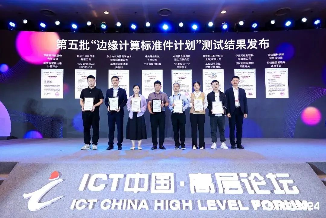 2024年9月26日,“邊緣計(jì)算標(biāo)準(zhǔn)件計(jì)劃”第五批測試結(jié)果在新型工業(yè)網(wǎng)絡(luò)創(chuàng)新論壇暨2024工業(yè)互聯(lián)網(wǎng)網(wǎng)絡(luò)創(chuàng)新大會(huì)上正式發(fā)布,由中國信息通信研究院總工程師敖立為通過測試企業(yè)頒發(fā)證書。