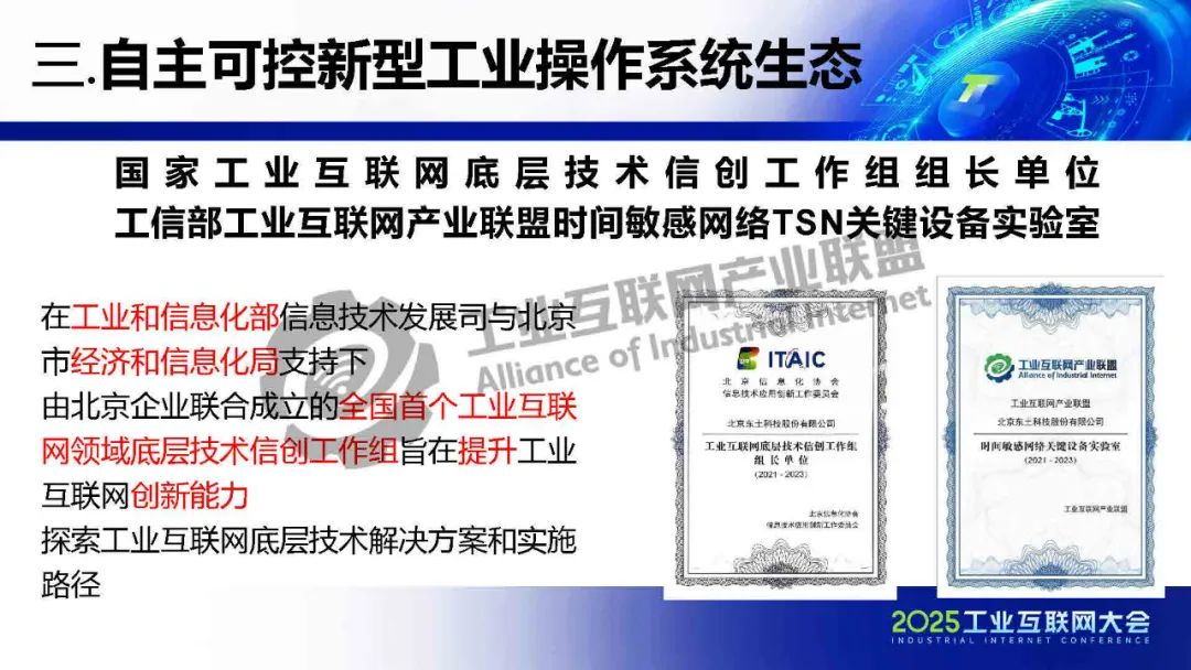 5月22日,在2025工業(yè)互聯(lián)網(wǎng)大會(huì)“新型工業(yè)控制與智能互操作發(fā)展專題活動(dòng)”上,北京東土科技股份有限公司副總裁程遠(yuǎn)發(fā)表了《自主可控新型工業(yè)操作系統(tǒng)生態(tài)》的主題演講。