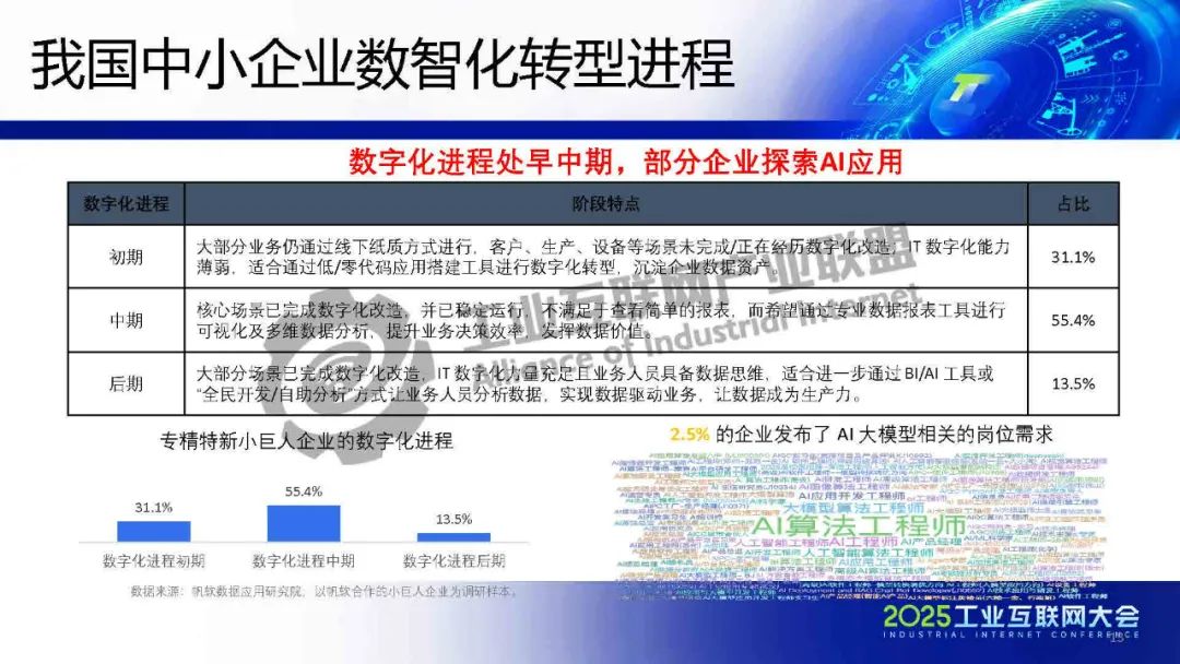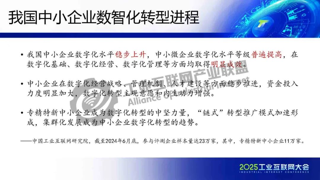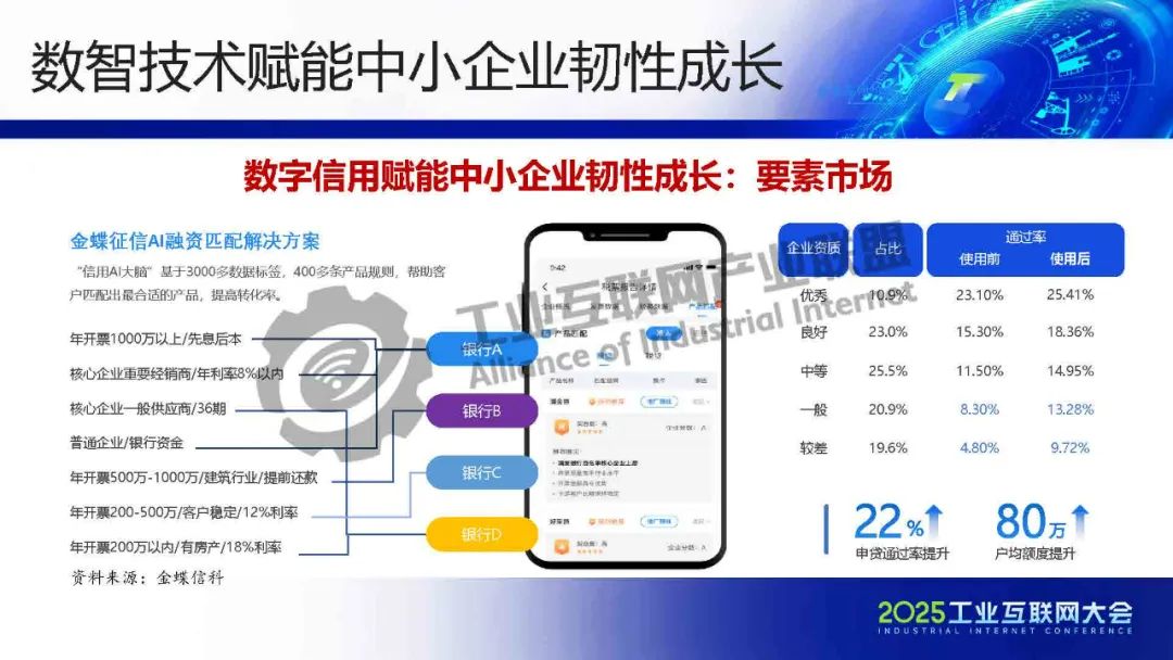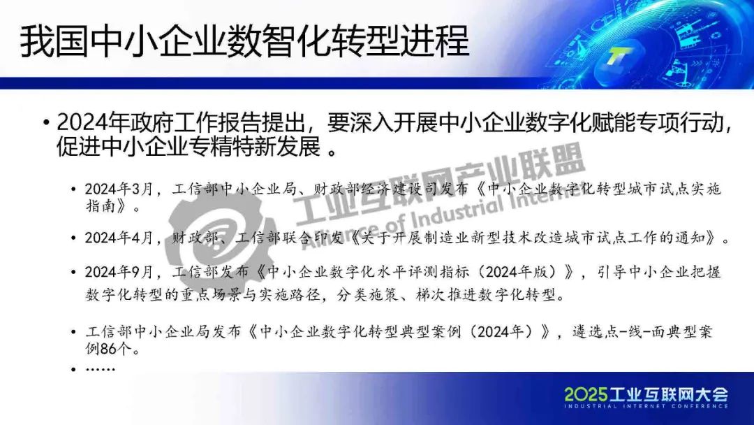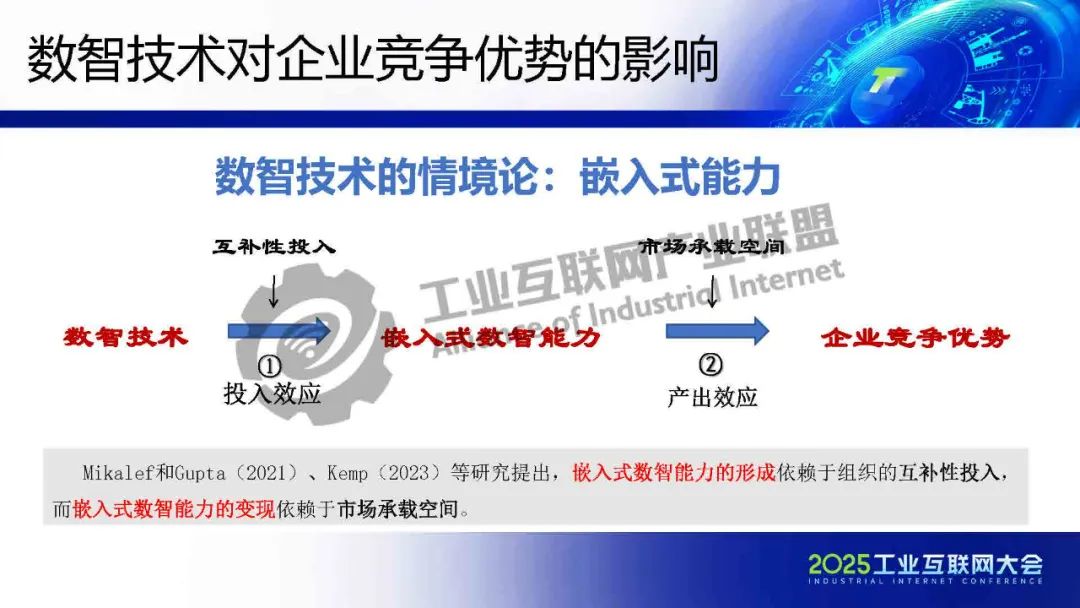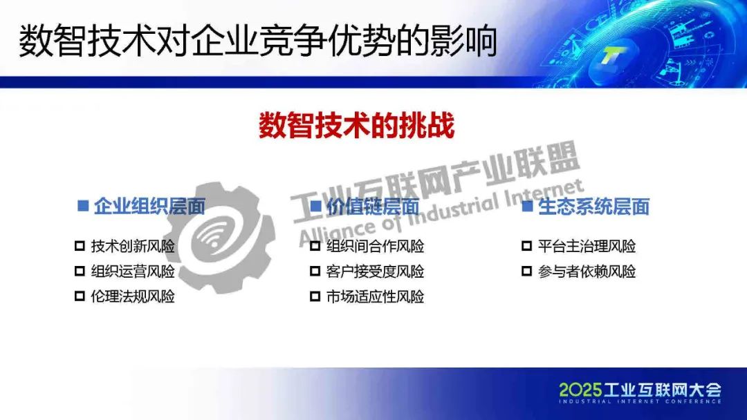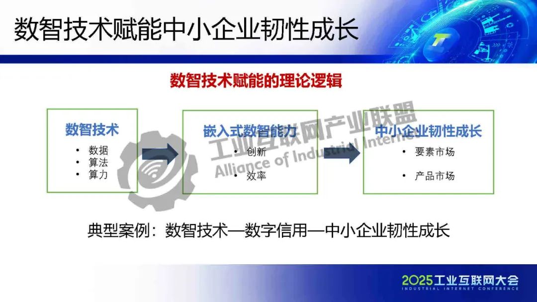 鄔愛其介紹,數智技術正成為中小企業(yè)韌性成長的關鍵驅動力。數智技術通過提升協(xié)同效率、優(yōu)化供應鏈和構建創(chuàng)新生態(tài),顯著增強企業(yè)競爭優(yōu)勢,但其效能取決于組織的互補性投入和市場承載空間。我國中小企業(yè)數智化轉型進程加速,政策支持力度加大,2024年多項政策文件出臺推動試點和評測,但整體仍處早期階段。數智技術通過構建數字信用體系賦能韌性成長,例如金蝶信科的AI融資匹配方案,利用產業(yè)鏈數據圖譜穿透上下游風險,助力企業(yè)精準識別客戶與供應商。專精特新企業(yè)成為轉型中堅,集群化、“鏈式”轉型模式逐步成型。未來需進一步解決技術嵌入能力與市場變現的協(xié)同問題。